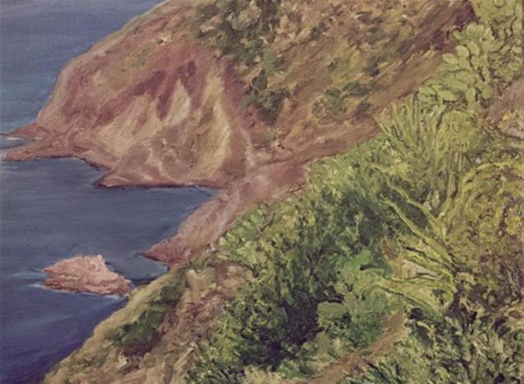 Olio su tela 50x40 - Suggestiva località costiera dell'Iglesiente che il dipinto rappresenta in uno stile impressionista, evidenziando il contrasto del verde della macchia mediterranea con l'azzurro del mare
