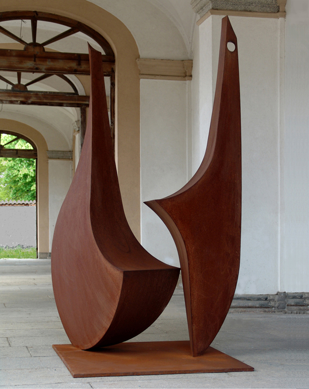 Corten steel sculpture consists of two figures on a basement; 240x90x90 cm