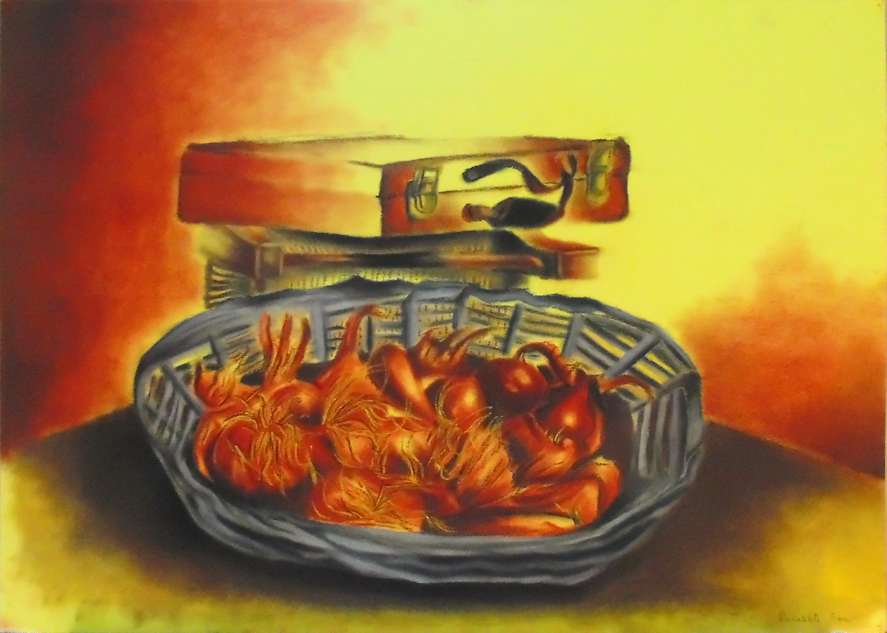 Still life with basket of onions