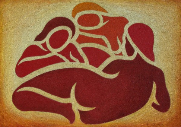 oil painting and sand on panel