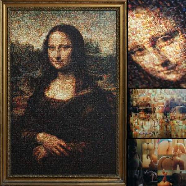 Tutto un insieme della più grande massa muscolare del corpo umano crea un unico, dissacrante, ritratto della Monna Lisa che, vista da vicino, assume tutto un'a