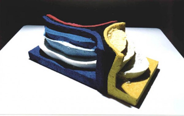 Lavori scultorei, tridimensionali. colorati. Scultura dove al materiale prezioso o significante, si sostituisce un materiale leggero e duttile. Alla monocromia