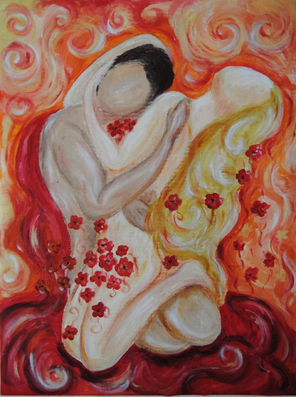 Una figura femminile dalle forme sinuose padroneggia la scena. La morbidezza del segno pittorico e della cascata di capelli sembrano unirsi, in una sorta di met
