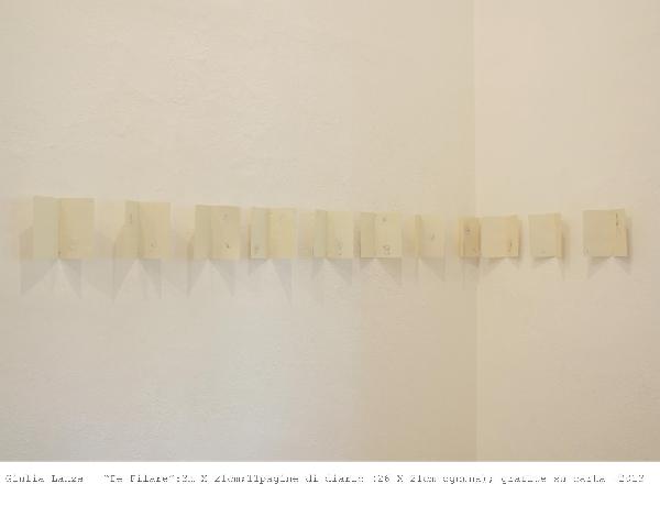 Nell'installazione ?De-Filare? esposta alla Temple University Gallery di Roma, ho fissato 11 disegni direttamente su parete con dei piccoli chiodi. La forma inc